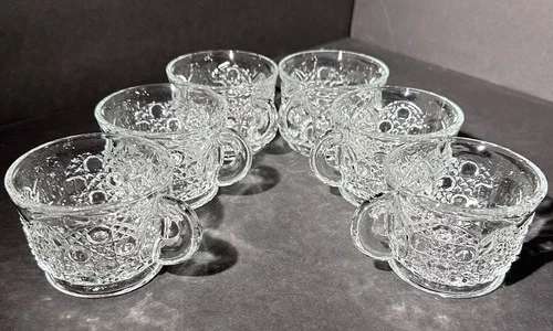Vintage Daisy and Button Punch Cups by L.E. Smith Glass Company EAPG Set (6)