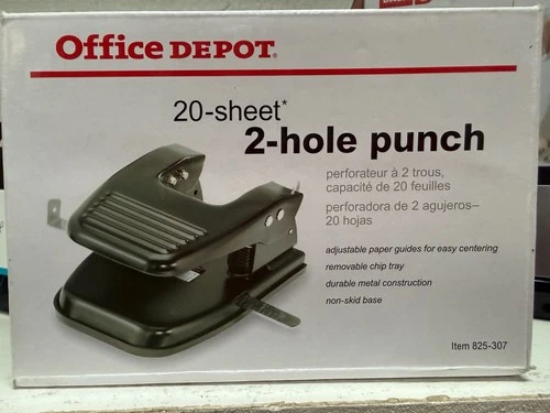 Office Depot Brand 20-Sheet 2-Hole Punch, Black, 825-307 New In Box NIB