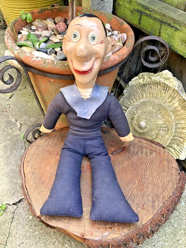 Vintage 1940/50's Sailor boy rag doll puppet painted composition head 19" high