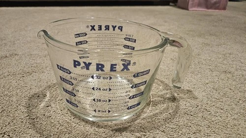 Vintage Pyrex 4 Cup Measuring Cup With Blue Lettering