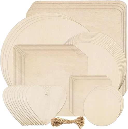 46Pcs Unfinished Blank Wood Slices - Pyrography Wood Blanks, 7Sizes Natural Wood