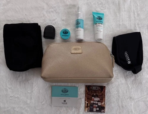 BRIC'S Qatar Airways Business Class Amenity Kit Travel Bag Toiletry Gold