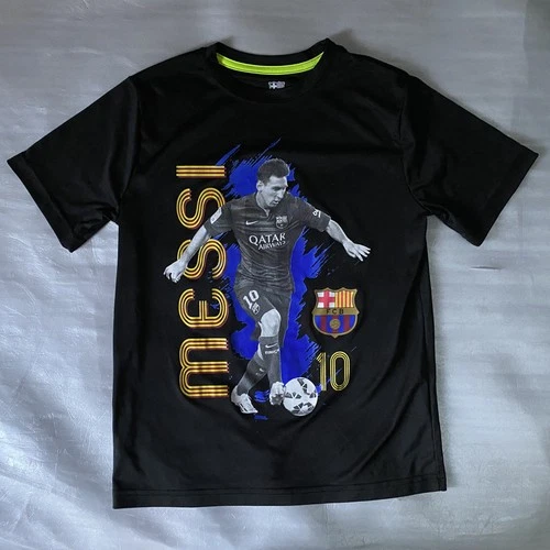 FC Barcelona Messi Shirt Jersey Men's Large Black Soccer Qatar Airways #10