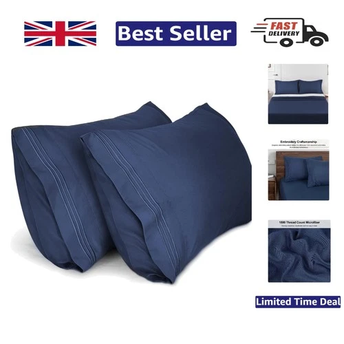 Breathable Queen Size Pillow Cases 2-Pack, Embroidered Soft Microfiber, Blue