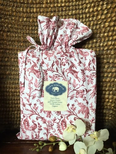 JOHN ROBSHAW Queen Duvet Cover Taani Berry 400TC Cotton Organic Red & White NEW