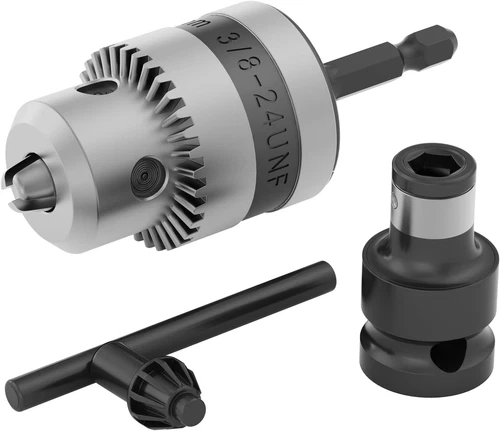 3/8” Drill Chuck with 1/4” Quick Change Hex Drive, Convert Impact Driver Hammer