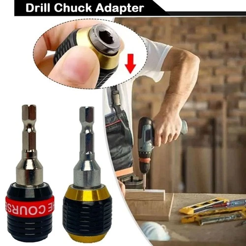 2x 1/4" Keyless Drill Bit Chuck Quick Change Adapter Converter Hex Shank