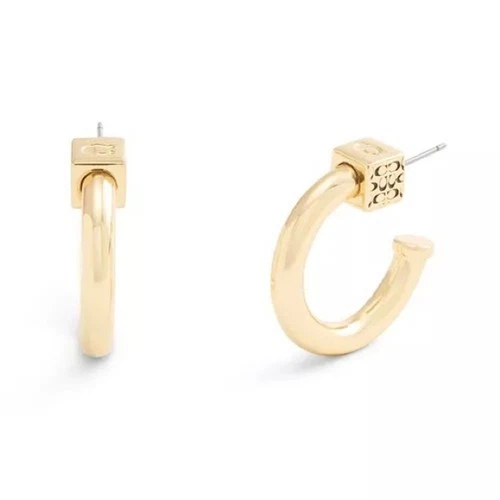 COACH Gold Signature Quilted Cube Chubby Hoop Earrings NWT