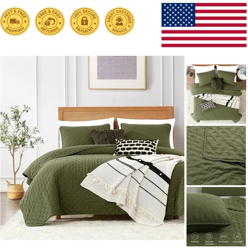 Cozy Olive Green Cloud King Quilt Set - 3 Pieces, Machine Washable for Easy Care