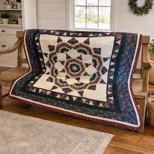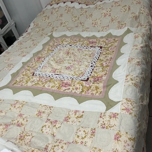 Vintage Flowers Quilt Hand-Machine Sewn 106 x 97 Inches