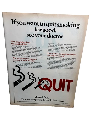 1986 Merrell Dow Quit Smoking Vintage Print Ad Doctor Health Awareness