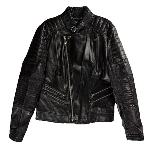Polo Ralph Lauren Lamb Leather Moto Biker Jacket Black Cafe Racer Size M