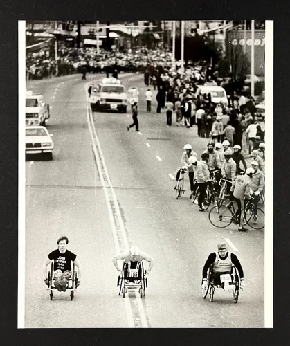 1986 Boston Marathon Wheelchair Racer Heartbreak Hill Crowd Cheers Press Photo