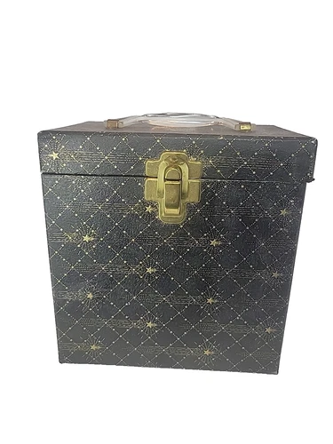 Vntg 45 rpm Record Case DECCAFILE Black w/Gold Stars Retro! Unused Tabs & Index
