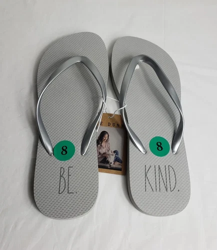 Rae Dunn Women's Sandals Flip Flops Be Kind Gray Beach Pool Comfort Sz 8 NEW