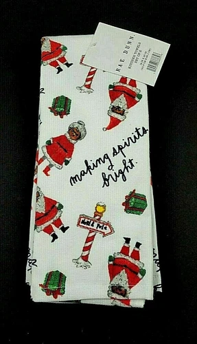 Rae Dunn Making Spirits Bright Mr. And Mrs. Claus Christmas Kitchen Towels