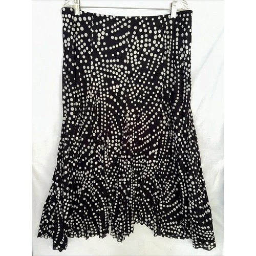 Polka Dot Maxi Skirt size large kick flare Lined Mesh Modest Whimsigoth Rafael