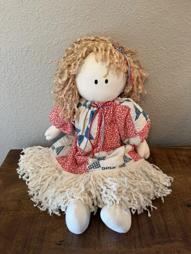 Vtg Primitive Quilt Fabric Cloth Rag Doll Folk Americana Patriotic Country Decor