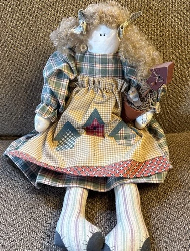 Primitive Rustic Country Decor Girl Shelf Sitter Rag Doll 16.5” Birdhouse Themed