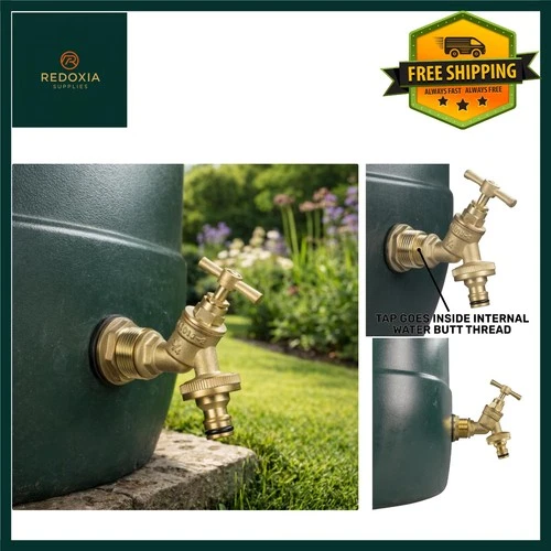 Rain Barrel Water Butt Tap Kit with Solid Brass Bib Tap + Hose Connector 26mm...