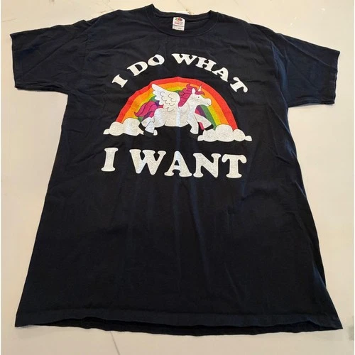 Fruit of the Loom I Do What I Want Unicorn Rainbow Graphic T-Shirt Mens Large L