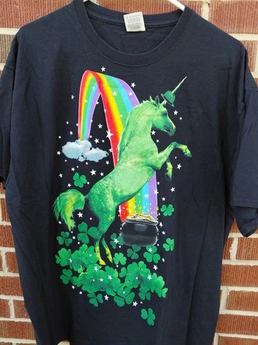 Vintage Fruit of the Loom St Patricks Day Unicorn Shirt XL Black Heavy HD Tee