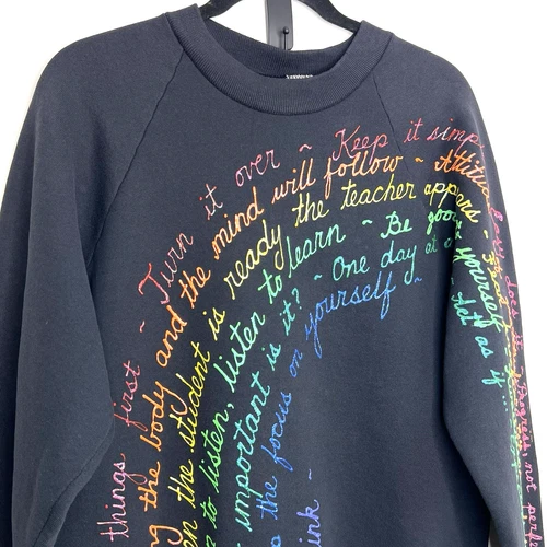 Vintage Fruit Of The Loom Sweater Rainbow Teacher LGBTQ+ Size L Black Made USA