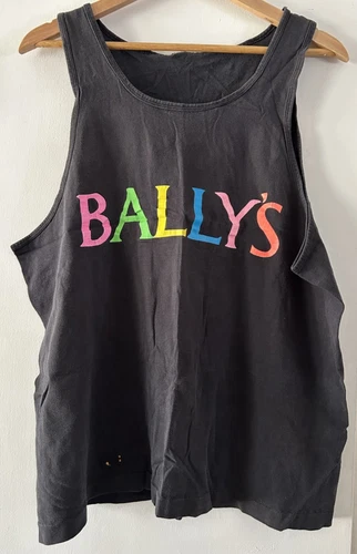 Vintage Bally’s Gym Tank Top 80s 90s Fruit of the Loom USA Black Rainbow Logo L