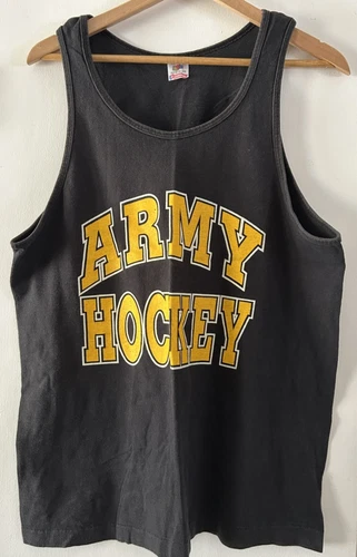 Vintage Army Hockey Gym Tank Top 90s Fruit of the Loom USA Black Rainbow Logo L