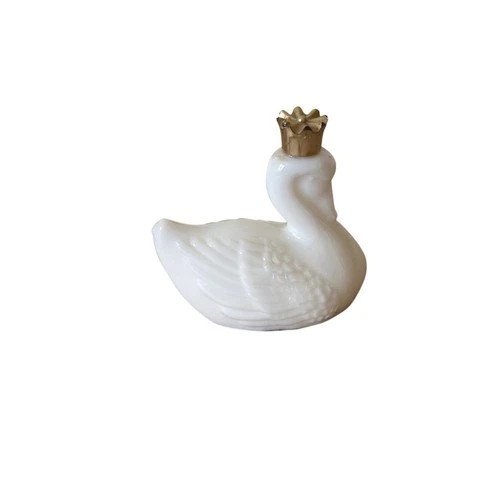 Vintage Avon White Milk Glass Swan Figurine with Gold Crown Collectible Decor