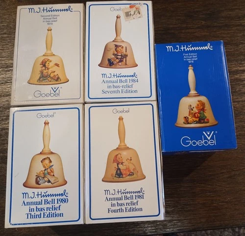 Lot of 5 M J Hummel Goebel Collectible Annual Bells 1978/79/80/81/84, Orig Box