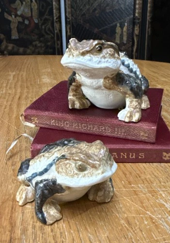 VTG Otagiri Japan Pair Of Toad Realistic Stoneware Plant Pot/Planter/Decor EUC