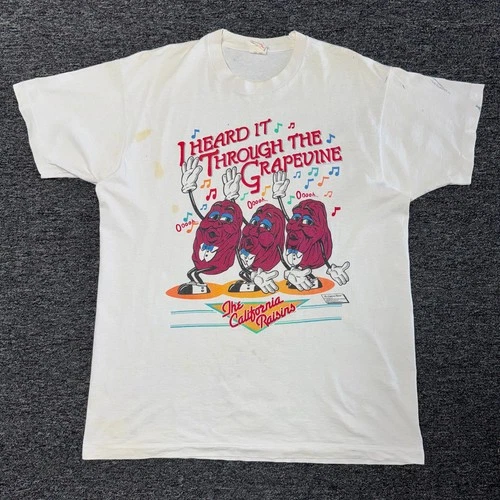 Vintage 80s California Raisins Grapevine Faded Music Funny T-Shirt XL White