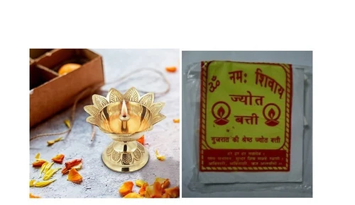 Brass Devdas Diyas & Cotton Wicks Home Temple Sawan Rakhi Hindu Puja Prayer Gift