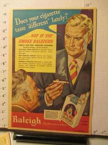 newspaper ad 1944 RALEIGH cigarette tobacco smoking WWII taste different?