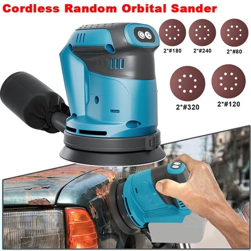 —Orbital Sander 5INCH 125MM 12600RPM Random Orbital Sander 12Pcs Sandpapers