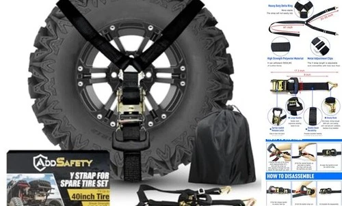 Y Strap for Spare Tire,3 Ratchet Straps Tie Down, Heavy Duty Spare Tire black