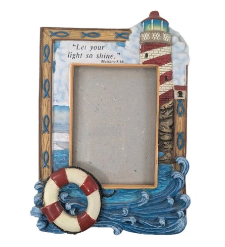 Nautical Photo Picture Frame 3D Resin Coastal Ocean Beach 3.5 X 5" Bible Verse
