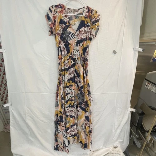 READ Jaase Dress Womens Medium Multicolor Patchwork Boho Maxi Smocked Waist
