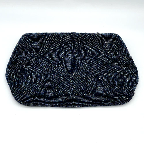 Vtg Saks Fifth Avenue Blue Beaded Clutch Purse Evening Bag Belgium 1950s READ