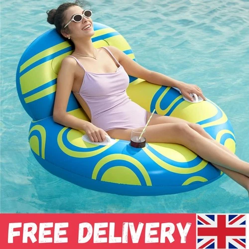 Beach & Pool Inflatable Lounger, 42” x 24”, Comfortable Backrest & Cup Holder