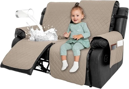 2 Seat Recliner Sofa Covers Pocket Water Repellent Furniture Protector Brown New