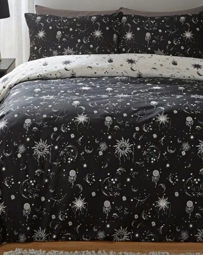 New Sun Moon Stars Black and White King Size Duvet Cover and 2 Pillowcases Set