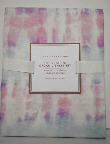 Pottery Barn Organic Tie-Dye Stripe Sheet Sett, Full Size Multicolor NWT