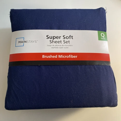 Mainstays Super Soft Recycled Brushed Microfiber Bed Sheet Set, Queen, Navy za5u