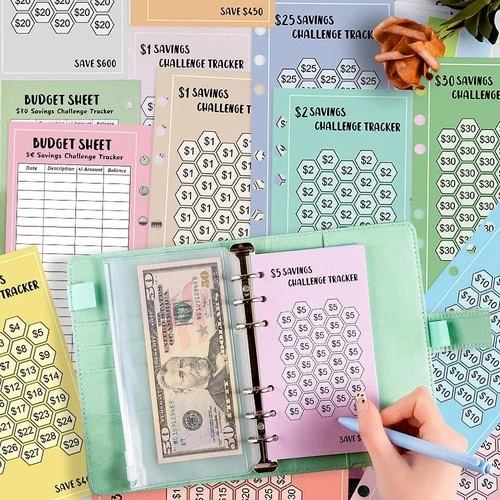 48 Sheets 100 Envelopes Money Saving Challenge Binder Trackers, 6 Ring A6 Binder