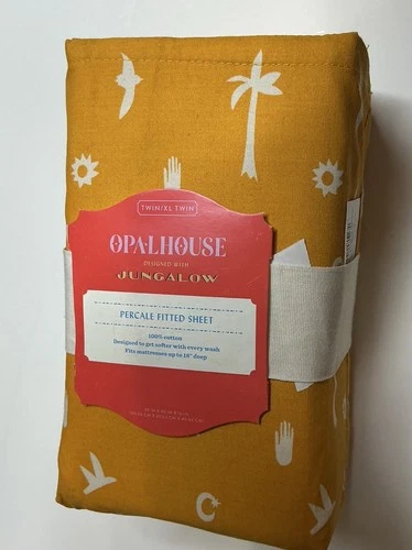 Opalhouse 100% Cotton Twin/XL Fitted Sheet Yellow Pattern Up To 18" Deep