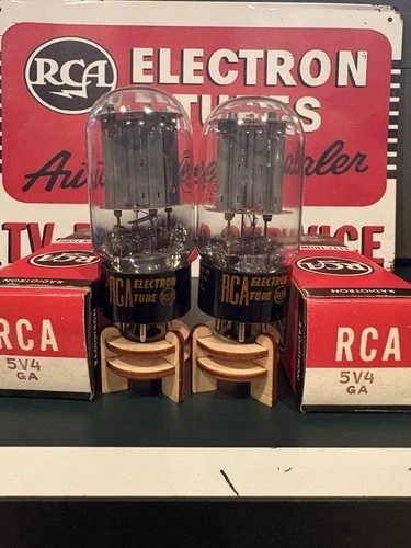 Match Pair 1961 RCA 5V4GA Grey Plate D Getter Rectifier Tubes TV7 Test NOS NIB🔈