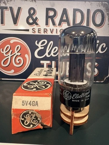1966 GE 5V4GA Black Plate Halo Getter Rectifier Tube TV7 Test ANOS Balanced 🔈