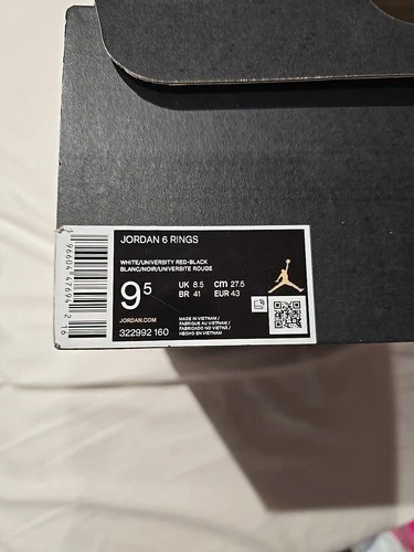Nike Air Jordan 6 Rings. 8.5 UK. Wbite/Red/Black. RRP £165. Brand New. With Box